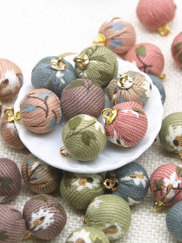 Floral Pattern Pom Pom Charms – Set of 15 Soft Textured Embellishments for Crafts & Accessories