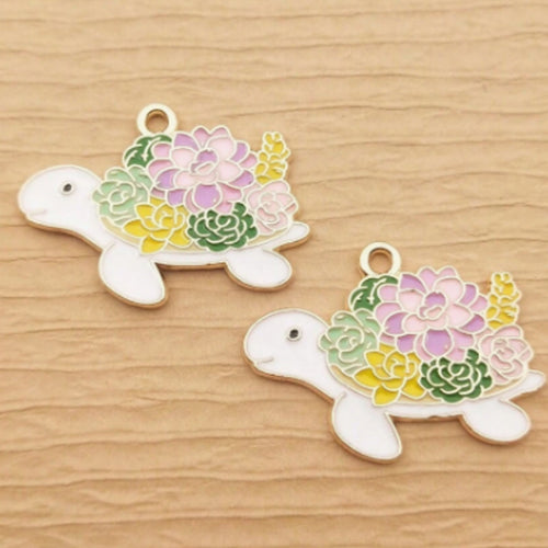 Floral Turtle Pendant – Set of 4 Nature-Inspired Charm for Crafts & Jewelry