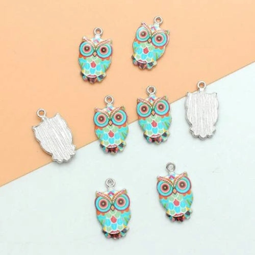 Oh So Blue Owl Pendant Charm – Set of 8 Whimsical Woodland Accent for Crafts & Jewelry