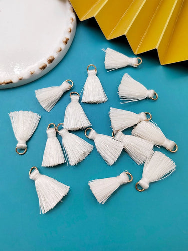 White Mini Tassel Charms Pack of 15 Dainty Jewelry and Craft Accents