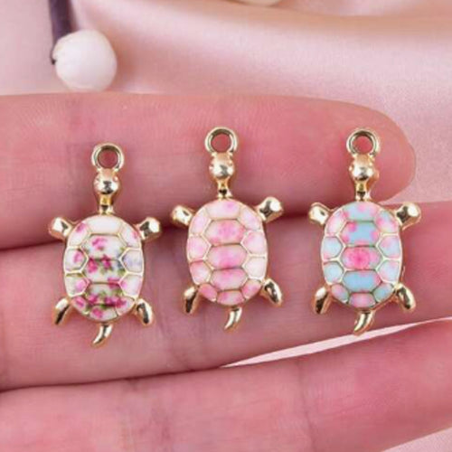Vintage Floral Turtle Pendant – Set of 5 Whimsical Charm for Nature-Inspired Crafts