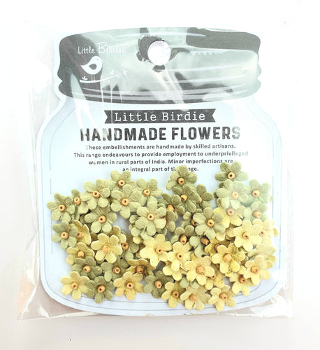 Little Birdie Handmade Flower – Sage Cream – Set of 60 Floral Embellishments