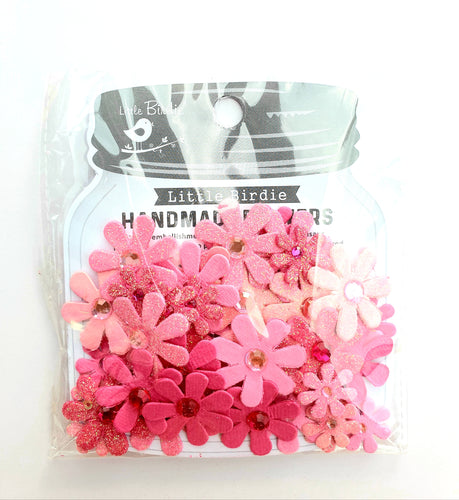 Little Birdie Handmade Sparkle Florettes – Rosy Note – Set of 60 Mini Floral Embellishments